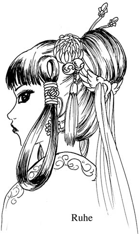 Ruhe, c'est son nom. Némésis, qui ne peut s'empêcher de jouer les commères, a fait son enquête sur elle comme sur toutes les Candidates valables. Originaire d'une famille aisée et nombreuse, fille d'un premier mariage, elle avait reçu une bonne éducation. Sa belle-mère l'avait chassée et deshéritée quelques mois auparavant, immédiatement après la mort de son père. Elle avait alors été vendue à une des maison de Geisha de la ville, mais le recrutement des Candidates lui avait permis d'en réchapper. D'elle-même, elle s'était présentée au Chef de Ville et l'avait impressionée par sa maîtrise de la danse. Ainsi, elle avait pu partir au Palais du Sud pour tenter de devenir Concubine. N'ayant plus nul part où retourner, elle est d'autant plus motivée pour réussir, ce qui en fait une adversaire dangereuse... mais attachante, en même temps. L'éclat sombre de ses yeux touche beaucoup Anée.