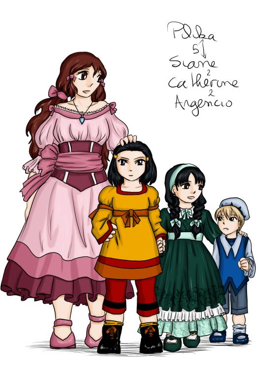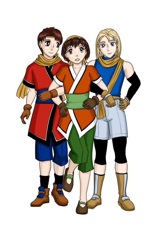 Face à Face Essai d'enfants Trio : Riou, Jowy et Nanami (Ombre) Trio : Jilia, Klaus et Sasarai... (Ombre) Jilia au bal