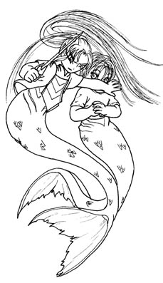 C'est sous-estimer Pyronée. D'un brusque coup de queue, elle fonce sur lui et lui entaille profondement le bras, levé par reflexes. Le sang rouge se répand dans l'eau. Entrainant Yuuki, l'elfe blonde en profite pour contourner le garçon et gagner le large. Mais derrière elle, les Craks encore plus furieux sont partis chercher des gaffes et se lancent à leur poursuite. Soudain, Yuuki tire la main de Pyronée et lui montre une silhouette qui leur fait des signes un peu plus loin, sous un bateau. C'est la petite rousse qui les avait prévenues. Elle leur indique du doigt la surface. Les deux filles remontent vers le bateau le plus vite qu'elles peuvent, talonnée par les Craks. Les silhouettes qui se penchent au-dessus d'eux les faits s'arreter net. La Garde!!