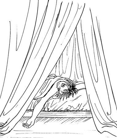 Son coeur se serre et Fauve lui prend la main pour le réconforter. Elle sait à quel point il souffre de ce qui arrive à sa soeur, elle est toujours là pour le soutenir. Tial sourit en réponse. Le jeune homme escalade le tronc et bondit sur le balcon, sans un bruit. Traversant les rideaux de voile salis et déchirés, il entre dans la pièce, cherchant des yeux le lit où doit dormir celui qui asservit sa soeur.