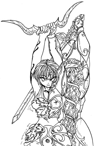Elle se lève, déploie ses ailes, son armures et ses armes elfique. Elle ne peut qu'obéir à son maître. Sans reculer, Tial soutient le regard froid de sa soeur. De toute son âme, il l'appelle. Yuuki reste immobile, comme hypnotisée par les yeux de son frère. Daradan ordonne une nouvelle fois:" Yuuki, tue cet intrus!"