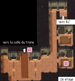 F= magasin d'item et armurerie.
