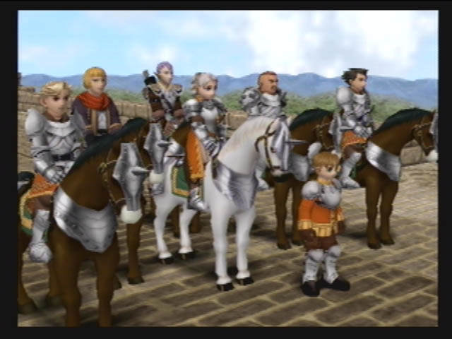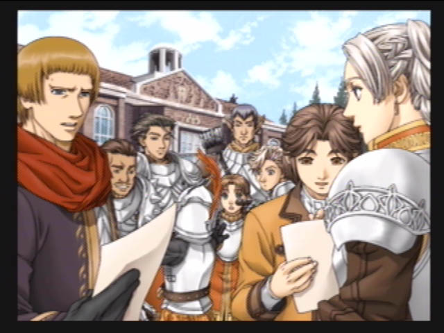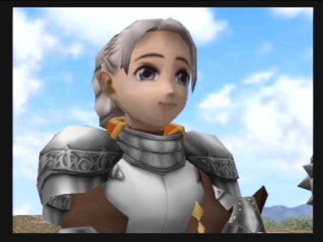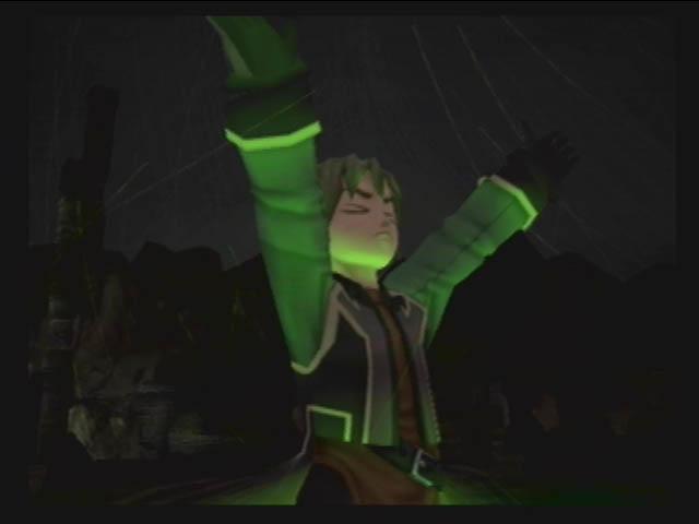 On sort par la porte qui s'ouvre, pour trouver Luc au centre d'une estrade. Le champion du feu (Chris) monte dessus pour lui parler. On se retrouve alors dans un monde blanc et gris. Pour chris c'est Brass Castle (pour geddoe, Caleria, pour Hugo, le village karaya). Apres deux combat contre 3 Gardien (niv60, 300hp, 5000 potch, 100sp), on reparle à Luc. Puis on sort de la vision.