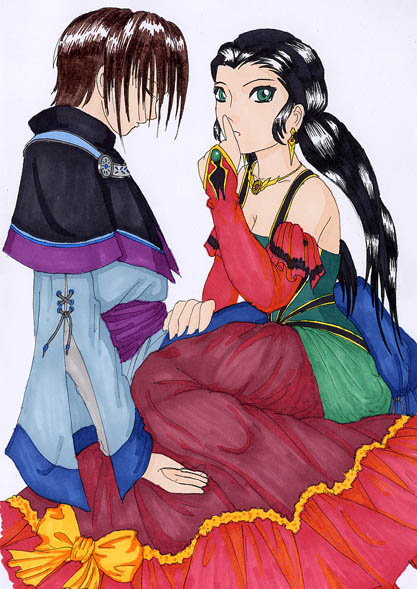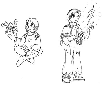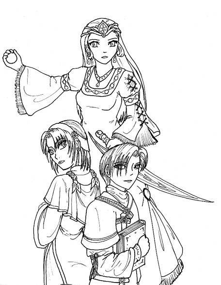 Sasarai est une fille, Jilia et Klaus sont des apprentis pretres du